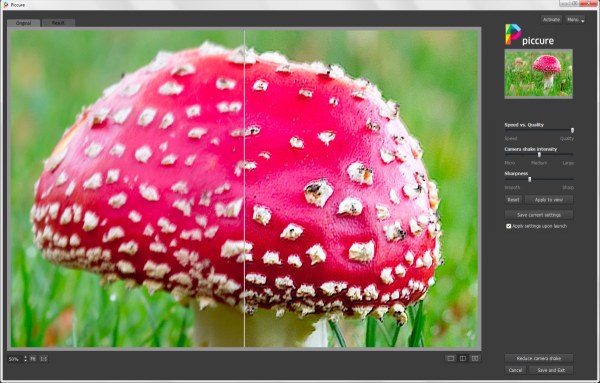 Piccure Plus - приложение и плагин для удаления размытостей фотографий появившихся из-за сотрясения фотокамеры при съемках без штатива или при неправильном выборе освещения. Piccure также эффективно интегрируется в Adobe Photoshop, Lightroom или Photoshop Elements. Piccure + является единственным программным пакетом, который может идентифицировать оптические отклонения на самом изображении, поэтому он может сгладить последствия от заводских особенностей объектива.