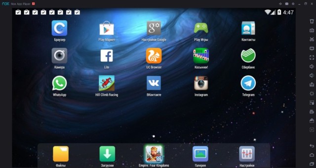 - Эмулятор построен на платформе Android 4.4.2, что обеспечивает поддержку практически всех приложений.