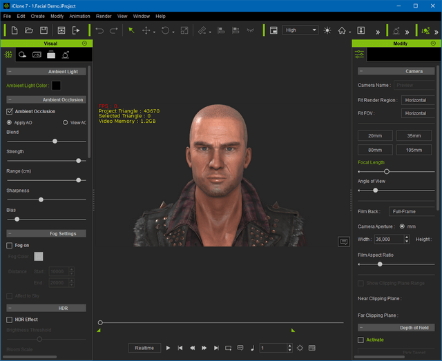 Для этого используется запатентованная технология FaceTrix, превращающая фотографию в трехмерный объект. Проекты iClone можно использовать как для работы, так и в качестве 3D-скринсейверов, заставок для мобильных телефонов и DVD с домашним видео. Программа хорошо взаимодействует с редакторами 2D-графики, благодаря чему прощается редактирование текстур, а также поддерживает программы 3ds Max и Maya, при помощи которых можно создавать элементы библиотеки для персонажей. Все сцены могут быть визуализированы в реальном времени с учетом рельефа, отражений и прозрачности.