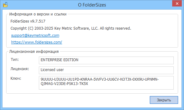 Скачать программу FolderSizes 9.8.584 x64 Enterprise Edition (28,72 МБ):