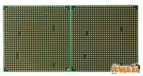 Сравнение разъемов Socket AM3 (слева) и Socket AM2+ (справа)