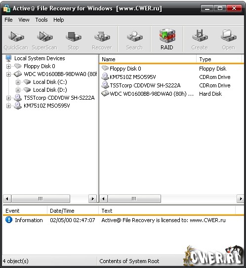 Active File Recovery для Windows - это эффективная программа, для восстановления данных. Восстанавливает данные после форматирования или потере разделов. Также восстановит данные потерянные из-за вирусов или разрушения каталога. Данная программа поддерживает следующие файловые системы: FAT12, FAT16, FAT32, NTFS и большинство типов переносных устройств и медиа, включая CompactFlash, SmartMedia, Secure Digital/MultiMediaCard, Sony карты памяти, Iomega ZIP и JAZ дубли. Также поддерживает восстановление поврежденных RAID.