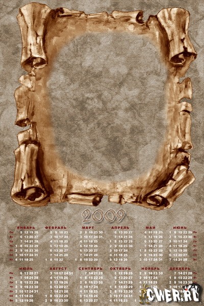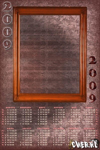 2 календаря на 2009 год в psd формате, слои скрыты, размер 2094x3142 пикс, А4 формат, возможность подстановки своего фото.