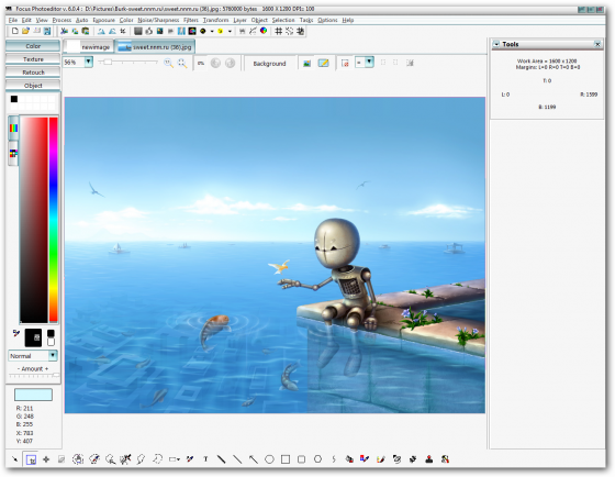 Focus Photoeditor - мощный и легкий в использовании редактор изображений, который вы сможете использовать для обработки и коррекции цифровых фотографий, а также для создания графики для ваших веб-сайтов, дома и офиса. Вы сможете получать фотографии с жесткого диска, другого приложения, а также с помощью сканера или фотокамеры и начинать их немедленную обработку в данном редакторе. В программе имеются функции для автоматического преобразования фотографий за один клик, благодаря чему вы сможете улучшить ваши фотографии за считанные секунды. Также вы сможете самостоятельно отредактировать внешний вид изображений при помощи встроенных в программу инструментов. Focus Photoeditor является неплохим выбором для новичка и для профессионального фотографа, т.к. в нем сочетаются множество качественных функций легких в использовании и настройке.