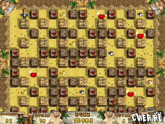 В этой красочной бродилке вам предстоит помочь двум симпатичным малышам, которые сражаются с монстрами при помощи взрывчатки. Выполнить эту миссию будет непросто — ожившие мумии, роботы-саперы и прочие злодеи перекопали всю округу. Они превратили прекрасные поля и долины в затейливые лабиринты, из которых есть только один выход. Чтобы открыть его — нужно собрать все драгоценности, разбросанные по уровню.