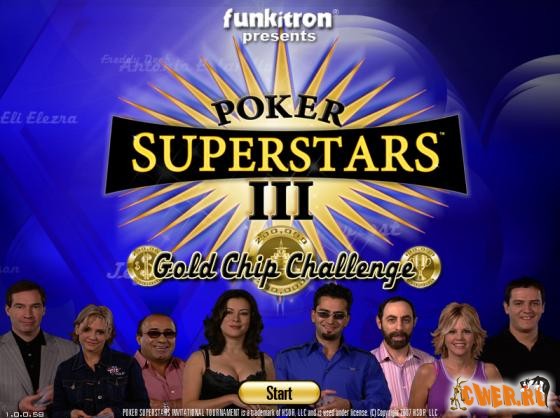 Вы готовы к следующему вызову? Poker Superstars III Gold Chip Challenge подмнимает ставки! Новые супер звезды, новые золотые фишки, новый режим игры.! Конечно, существуею и динмичный напряженный режим турнира, прямо как на ТВ-шоу, или можно играть "на деньги". Два разных уровня сложности позволят подстроить игру под ваш уровень. Суперзвезды покера ждут вызова, вы сможете его принять?