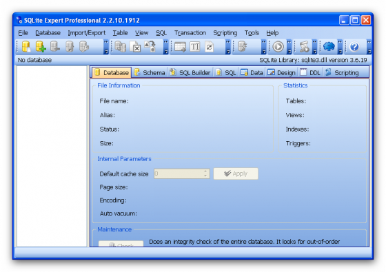SQLite Expert Professional - мощный визуальный инструмент, который позволяет Вам легко работать с базами данных SQLite3. Содержит эффективные инструменты управления данными. Предоставляет все необходимые инструменты для работы: просмотр, создание, редактирование, копирование, удаление, экспорт объектов, управление учетными записями базы, управление функциями и процедурами. Программа имеет простой и интуитивно понятный графический интерфейс.