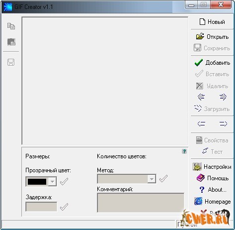 Очень простая программа для создания анимированных GIF-файлов (мультфильмов, баннеров и др), не требует установки.