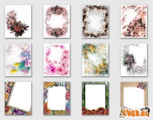 Две очень красивых рамки для фотомонтажа, украшенных букетами цветов.