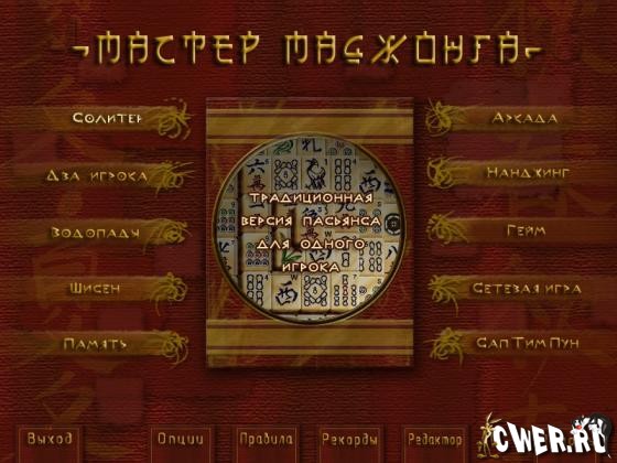 Это замечательная версия восточной игры, известного пасьянса Маджонг (или Шанхай). Цель игры состоит в том, чтобы удалить все плитки. Они должны быть удалены парами. Правила просты и игра является чрезвычайно захватывающей. 2-х и трехмерный вид, легка в использовании, приятный интерфейс, замечательная, расслабляющаяся восточная и электронная музыка, большое количество миниигр, сотни фонов, расположений и звуковых эффектов.