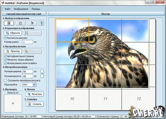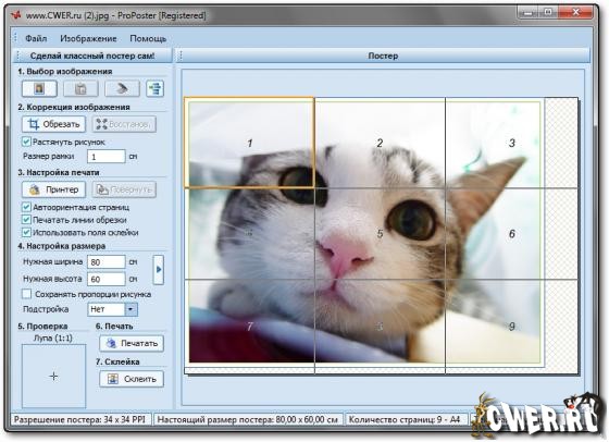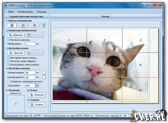 Программа для создания из картинки/фотографии постеров разного размера. Для печати не нужен специальный плотер, теперь печатать постеры можно на обычном принтере!