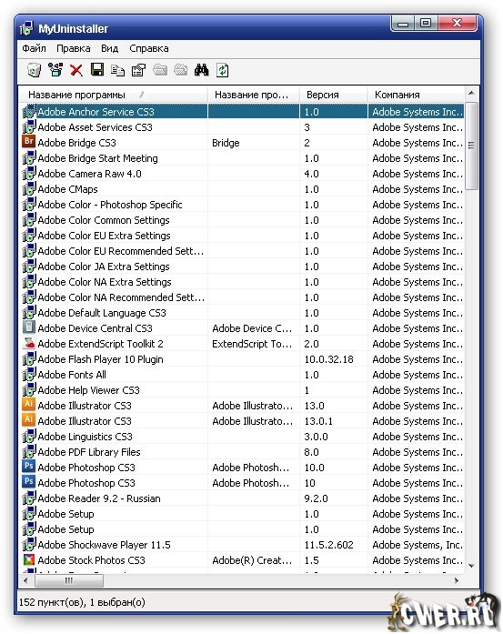 MyUninstaller - альтернатива стандартному апплету "Установка и удаление программ". Несмотря на малый размер, в отличие от встроенного в систему модуля, MyUninstaller обладает расширенными опциями, среди которых в первую очередь стоит отметить показ подробной информации об установленных программах, удаление сразу нескольких программ, поиск, возможность работы из командной строки, а также выдачу HTML-отчета. Поддерживаются 32-битные и 64-битные ОС.