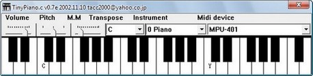 Эмулятор пианино и не только пианино. С помощью этой программы ваша клавиатура превращается в настоящий синтезатор! Использует стандартные MIDI библиотеки, которые есть в каждой Windows, тем самым размер минимален. Рекомендую.