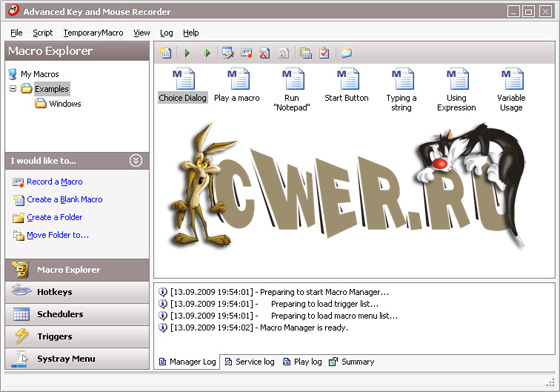 Macro ToolsWorks – это мощная автоматизация в Windows. Благодаря мощному встроенному языку создания макросов (более 150 команд) данная программа позволит вам исключить повседневные повторяющиеся задания. Данная программа позволит пользователям создавать макросы, работающие в любых Windows приложениях и запускать макросы, используя горячие клавиши или текстовые сокращения, с настраиваемой панели инструментов, определенных действий мыши или расписания для запуска макросов в определенное время или после определенного события. Сложность макроса может ранжироваться от простой вставки текста до изощренных действий.