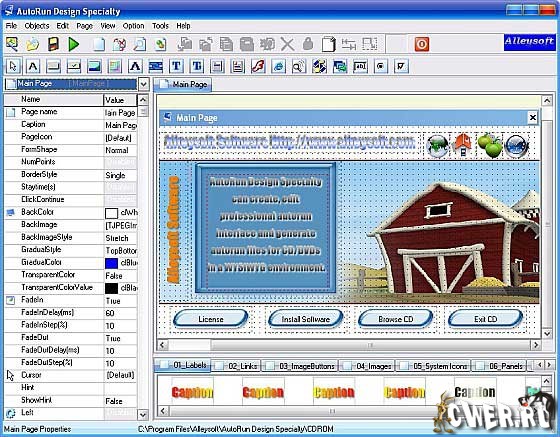 Portable AutoRun Design Specialty v9.50.6 - Программа для создания меню автозапуска диска. Содержит удобные инструменты для создания оригинального индивидуального меню. Есть возможность добавлять различные элементы, такие как страница лицензионного соглашения, заставка, появляющаяся при вставке диска в привод, окно, сопровождающее закрытие меню и т. д.