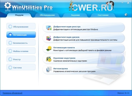 WinUtilities содержит пакет утилит для настройки и оптимизации Вашей операционной системы. Программа позволяет находить и удалять критические неисправности, неправильные ссылки и ключи в реестре, поможет правильно удалить приложения и программы, а также очистит историю интернета, cookies и многое другое. Также в программе есть возможность настроить автозапуск программ и изменять скрытые опции ОС.
