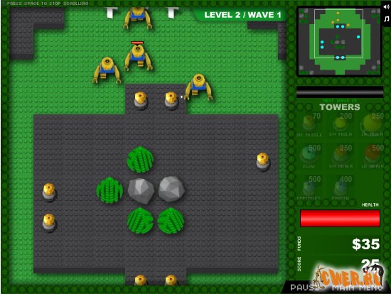 И снова башенки на флеше, но только с приставкой "анти". Ваша задача не охранять территорию, а наоборот прорываться через неё. В игре десять уровней, разнообразная техника и различные бонусы. С помощью стрелок можно менять направление движения Вашей армии. Есть возможность повышения уровня защиты каждой единицы техники (1-5).