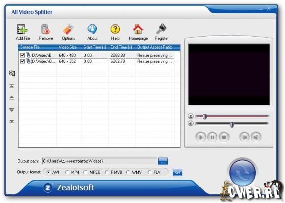 Allok Video Splitter - мощная сервисная программа для разделения, обрезания (подрезки) больших AVI, DivX, Xvid, MPEG, WMV, ASF, RM, MOV, 3GP или MP4 файлов на маленькие клипы в различных форматах. Встроенный видео проигрыватель и различные режимы разделения позволят вам с легкостью разделить или обрезать видео файл на маленькие клипы. Вы можете даже использовать данную программу для конвертирования отдельного файла. К выходным форматам относятся AVI, MPEG I/II, VCD, SVCD, DVD, WMV. Все кодировщики/кодеки уже встроены и любое преобразование может быть сделано после скачивания данной программы. Данная программа не требует каких-либо дополнительных технических навыков и очень проста в использовании.